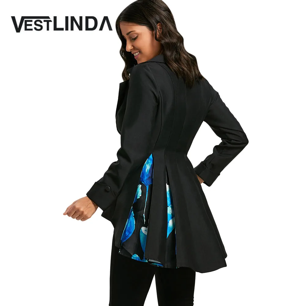 Kopen Goedkoop VESTLINDA Jassen Vrouwen 2017 Enkele Breasted Herfst Winter Casual Jassen Feminino Hoge Lage Bloemenprint Skirted Coat Online